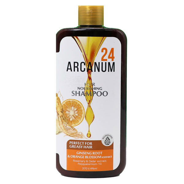 شامپو تقویت کننده آرکانوم مخصوص موهای چرب و شوره دار حاوی عصاره جینسینگ و نارنج حجم ۳۷۰ میل،سرشار از آنتی اکسیدان ها است و از تار های مو محافظت میکند